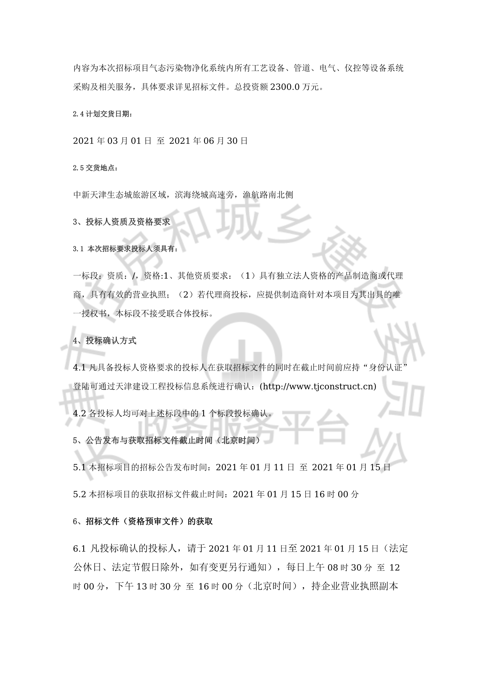 中新天津生态城可再生能源循环利用工程气态污染物净化系统成套设备采购及相关服务招标公告